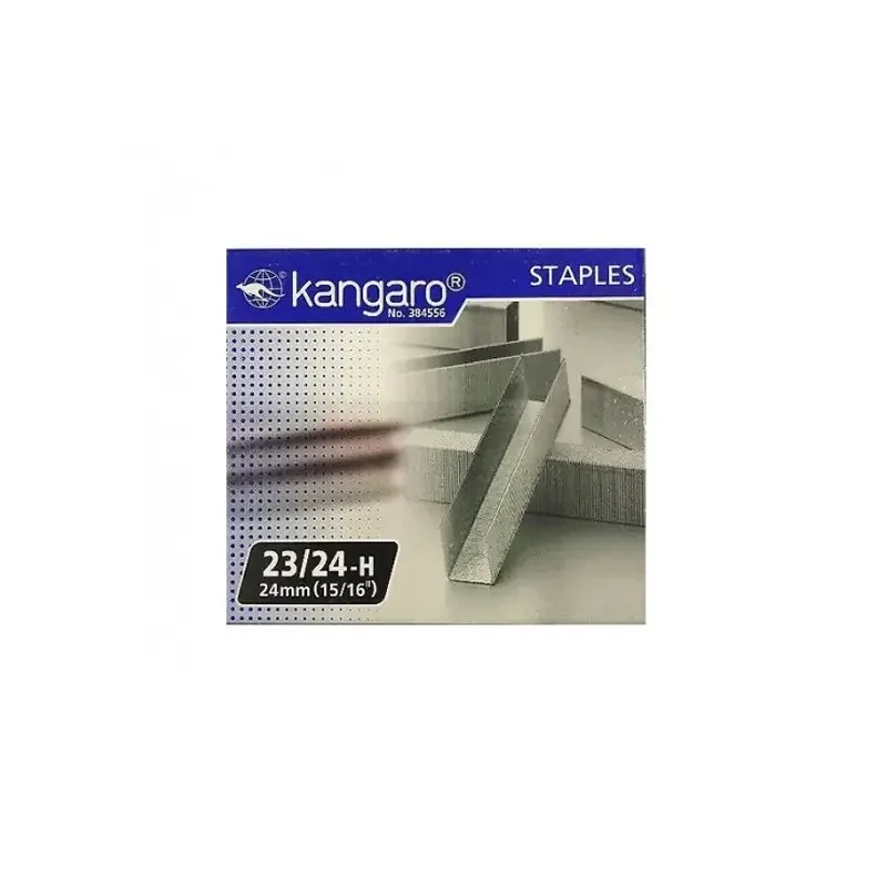 Agrafes 23/24 Kangaro en métal, idéales pour l’agrafage de documents épais jusqu’à 200 feuilles. Solides et fiables, parfaites pour un usage professionnel.