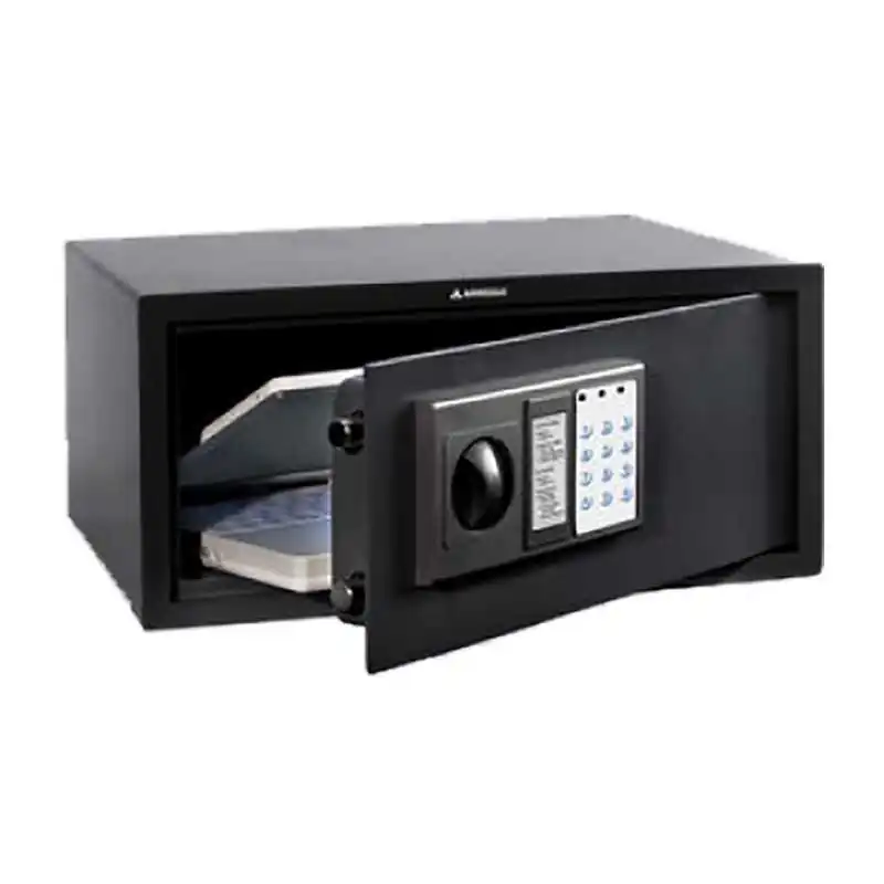 Le coffre-fort électronique propose un système douverture équipé dun bouton de manuvre qui actionne les pênes qui le rend pratique mais résistant. Ultra sécurisé avec son système douverture par code électronique allant de 4 à 8 chiffres, il répond aux exigences de haute sécurité.
