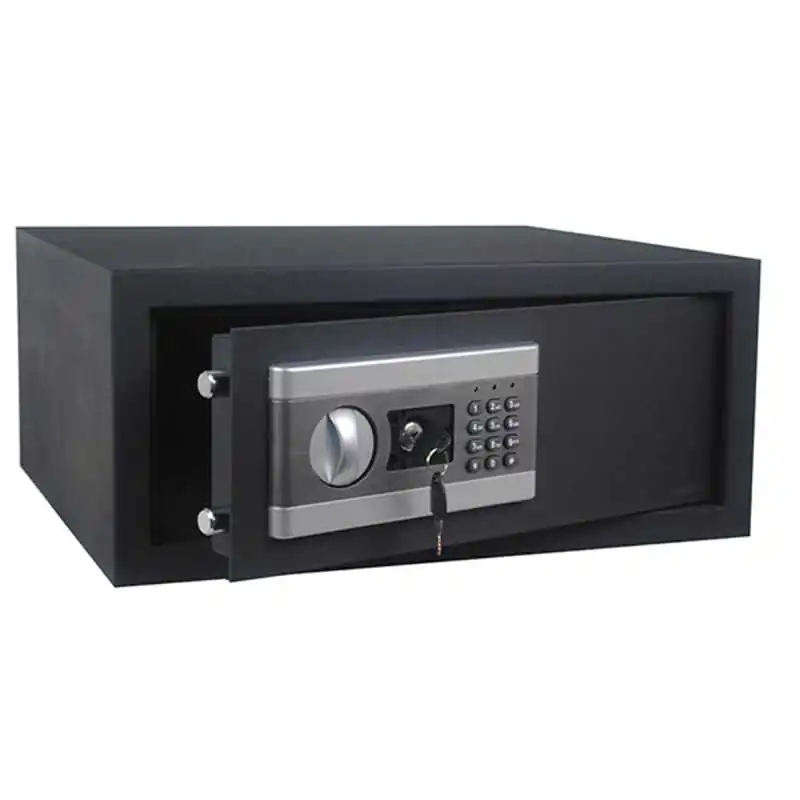 Ce coffre fort dispose d'un bouton de programmation intérieur, fournit avec 4 piles neuves. Avec Clé fournit en cas d'urgence.Nombre de combinaisons est de 100 millions, entre 3 et 8 chiffres, Blocage automatique du système. Un système de protection anti-blocage qui empêche sa manipulation de l'extérieur. Poids 8 kg, Volume 30 litres