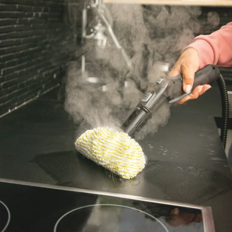 le nettoyeur vapeur SC 4 EasyFix se démarque par son rangement pour câble, son compartiment pour accessoires et la position de parking de la buse de sol. Dotée d’une articulation flexible, la buse de sol EasyFix garantit une ergonomie optimale et des résultats irréprochables. Le système de bandes autoagrippantes permet de fixer simplement et rapidement la serpillière sur la buse de sol et de la retirer sans contact avec la saleté. Le réglage de la vapeur sur 2 niveaux permet d’ajuster l’intensité de la vapeur en fonction de la surface et du degré d’encrassement. La vaste gamme d’accessoires permet de redonner tout leur éclat au carrelage, aux plaques de cuisson et à la hotte, même jusque dans les moindres interstices – également en cas de saleté incrustée.
