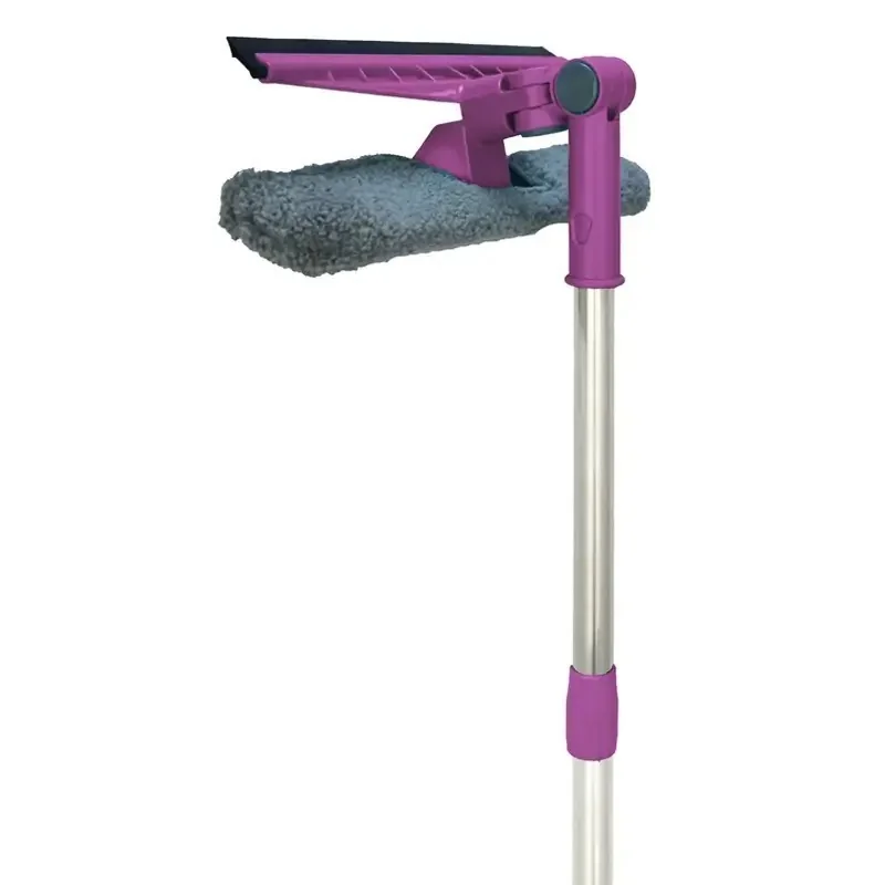 Le nettoyeur de vitres avec manche est idéal pour nettoyer des surfaces lisses telles que les vitres et miroirs. Grâce à sa tête en caoutchouc et son mop absorbant, il offre un nettoyage impeccable. Sa tête télescopique facilite l’accès aux zones difficiles, et son mécanisme rotatif permet une rotation de 180°. L'extension se détache pour un usage manuel. Lavable à basse température.