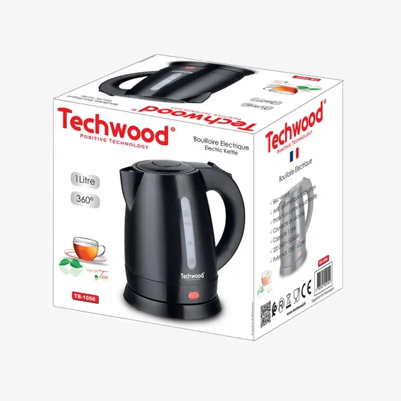 Compacte et performante, cette bouilloire noire de 1 L est idéale pour un usage quotidien. Elle offre une chauffe rapide (1350–1600 W), un socle 360°, un bec verseur précis, un couvercle de sécurité, et des protections contre la surchauffe avec arrêt automatique à ébullition.