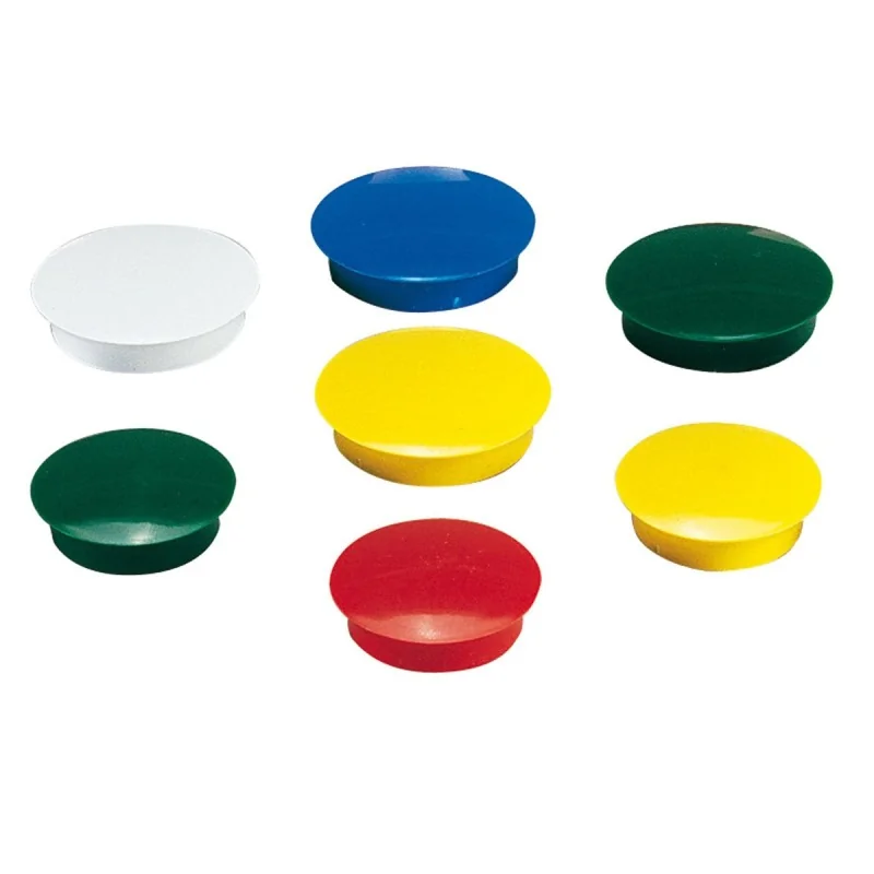 et de10 boutons de fixations magnétiques aimantés proposés en 8 couleurs assorties diamètre 15 mm pour l'affichage de vos documents sur toute surface métallique
