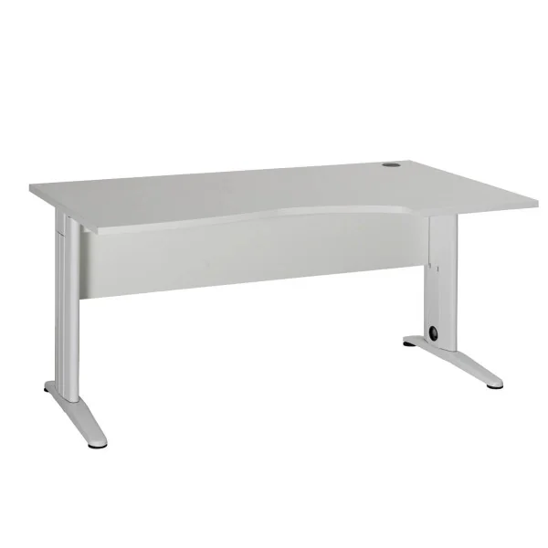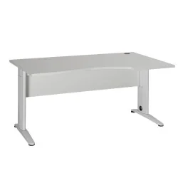 Plateau de travail en panneau stratifié épaisseur 25mm bordure droit avec couvre chant sur le pourtour de 2mm antichoc. Piètements métalliques peinture époxy avec troues et traverse passe câbles, et vérins de réglage de niveau au sol. Cache jambe en panneau stratifié épaisseur 19mm avec couvre chant sur le pourtour de 4/10 de mm. Retour intégré simple à droite avec plateau de travail en panneau stratifié épaisseur 25mm bordure droit avec couvre chant sur le pourtour de 2mm antichoc. Piètement métallique cylindrique peinture époxy avec vérin de réglage de niveau au sol.