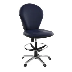 Assise et dossier en mousse injectée. Revêtement en simili cuir. Mécanisme Basculant, tournant, roulant, réglable en hauteur. Structure étoilé à 05 branches en couleur chromé avec 05 roulettes tournantes roulantes à double galets même matière avec repose pieds métal chromé.