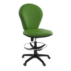 Assise et dossier en mousse injectée. Revêtement en simili cuir. Mécanisme Basculant, tournant, roulant, réglable en hauteur. Structure étoilé à 05 branches en couleur noir avec 05 roulettes tournantes roulantes à double galets même matière avec repose pieds métal chromé.