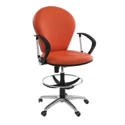 Assise et dossier en mousse injectée. Revêtement en simili cuir. Accoudoirs en acier chromé et Polypropylène noir. Mécanisme Basculant, tournant, roulant, réglable en hauteur. Structure étoilé à 05 branches en couleur chromé avec 05 roulettes tournantes roulantes à double galets même matière avec repose pieds métal chromé.