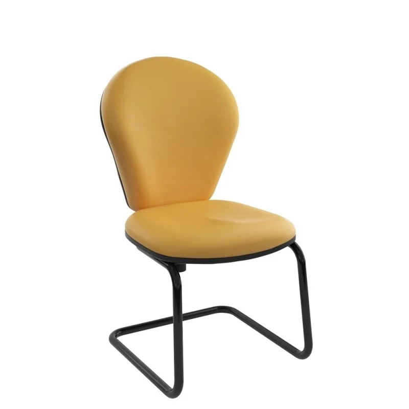 Assise et dossier en mousse injectée. Revêtement en simili cuir. Structure métallique ( luge ) peinture époxy noir avec patins danti-dérapage.