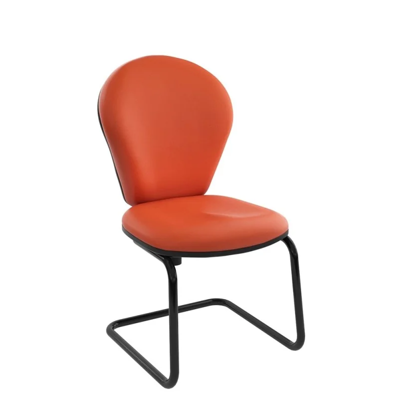 Assise et dossier en mousse injectée. Revêtement en simili cuir. Structure métallique ( luge ) peinture époxy noir avec patins danti-dérapage.