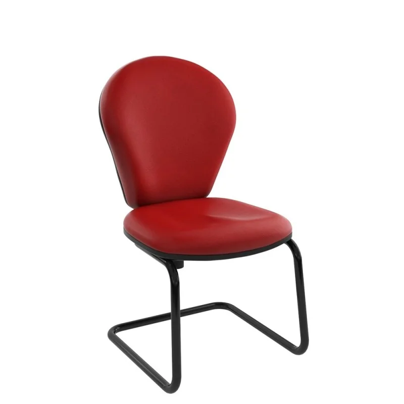 Assise et dossier en mousse injectée. Revêtement en simili cuir. Structure métallique ( luge ) peinture époxy noir avec patins danti-dérapage.