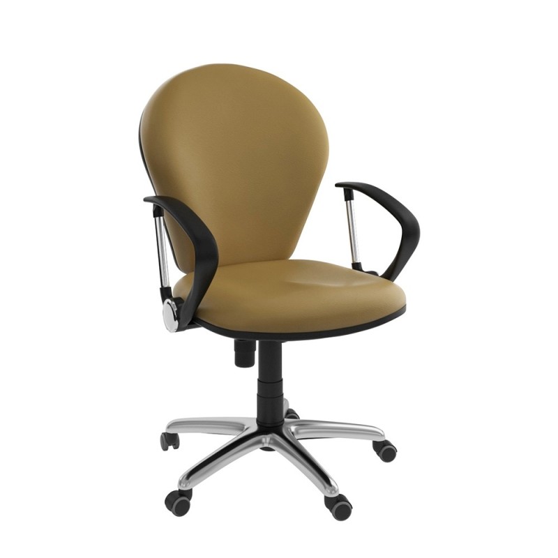 Assise et dossier en mousse injectée. Revêtement en simili cuir. Accoudoirs en acier chromé et Polypropylène noir. Mécanisme Basculant, tournant, roulant, réglable en hauteur et en inclinaison. Structure étoilée à 05 branches en métallique chromé avec 05 roulettes tournantes roulantes à double galets même matière.