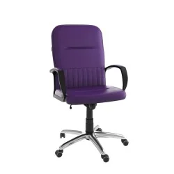 Assise et dossier rembourrés en mousse souple avec couche de dacron. Revêtement simili cuir. Accoudoirs fixe en Polypropylène couleur noir avec une partie tapissé. Mécanisme tournant, roulant, réglable en hauteur et en inclinaison. Structure étoilée à 05 branches en méttalique couleur chromé avec 05 roulettes tournantes roulantes à double galets même matière.