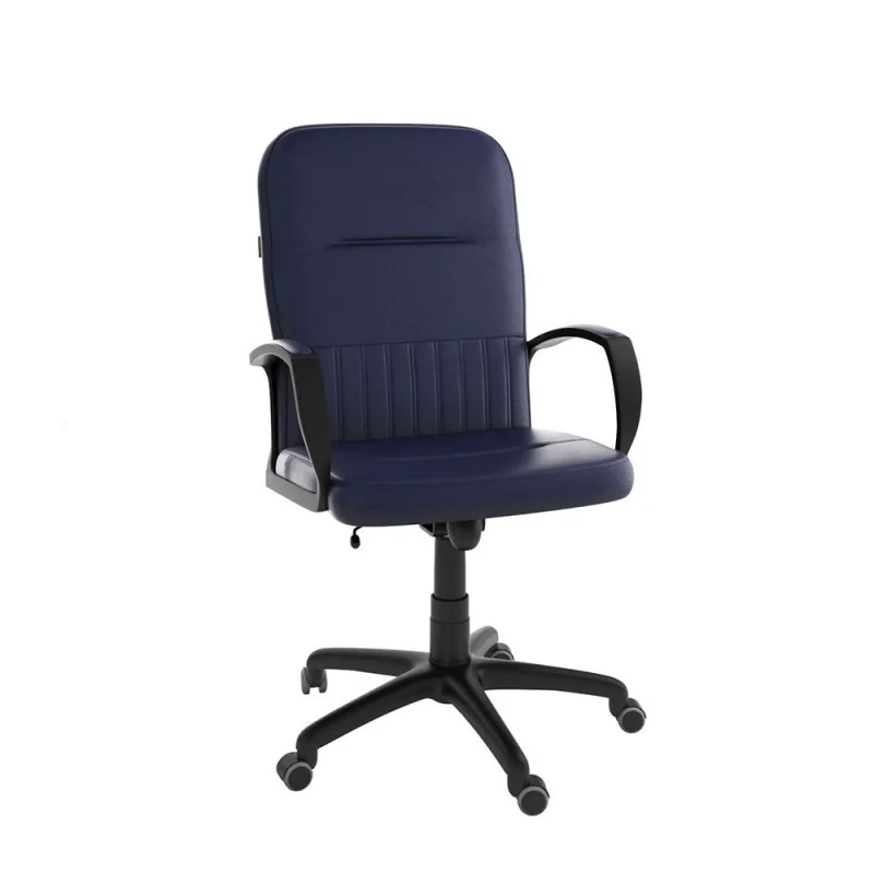 Assise et dossier rembourrés en mousse souple avec couche de dacron. Revêtement simili cuir. Accoudoirs fixe en Polypropylène couleur noir avec une partie tapissé. Mécanisme tournant, roulant, réglable en hauteur et en inclinaison. Structure étoilée à 05 branches en Polypropylène couleur noir avec 05 roulettes tournantes roulantes à double galets même matière.