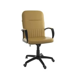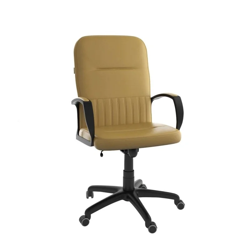 Assise et dossier rembourrés en mousse souple avec couche de dacron. Revêtement simili cuir. Accoudoirs fixe en Polypropylène couleur noir avec une partie tapissé. Mécanisme tournant, roulant, réglable en hauteur et en inclinaison. Structure étoilée à 05 branches en Polypropylène couleur noir avec 05 roulettes tournantes roulantes à double galets même matière.