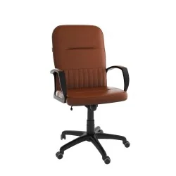 Assise et dossier rembourrés en mousse souple avec couche de dacron. Revêtement simili cuir. Accoudoirs fixe en Polypropylène couleur noir avec une partie tapissé. Mécanisme tournant, roulant, réglable en hauteur et en inclinaison. Structure étoilée à 05 branches en Polypropylène couleur noir avec 05 roulettes tournantes roulantes à double galets même matière.