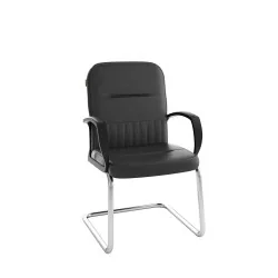 Assise et dossier rembourrés en mousse souple avec couche de dacron. Revêtement simili cuir. Accoudoirs fixe en Polypropylène couleur noir avec une partie tapissé. Structure métallique ( luge ) chromé avec patins danti-dérapage.