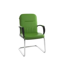 Assise et dossier rembourrés en mousse souple avec couche de dacron. Revêtement simili cuir. Accoudoirs fixe en Polypropylène couleur noir avec une partie tapissé. Structure métallique ( luge ) chromé avec patins danti-dérapage.