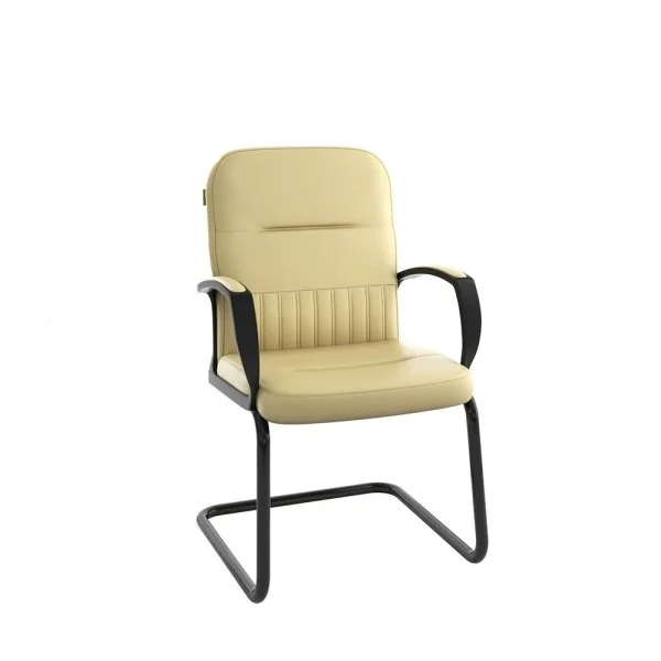 Assise et dossier rembourrés en mousse souple avec couche de dacron. Revêtement simili cuir. Accoudoirs fixe en Polypropylène couleur noir avec une partie tapissé. Structure métallique ( luge ) noir avec patins danti-dérapage.