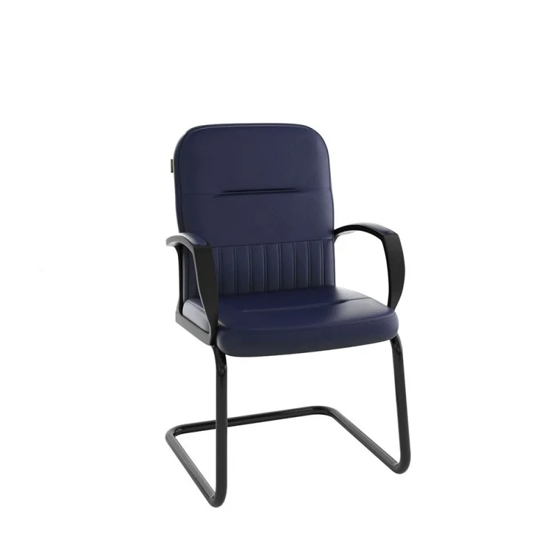 Assise et dossier rembourrés en mousse souple avec couche de dacron. Revêtement simili cuir. Accoudoirs fixe en Polypropylène couleur noir avec une partie tapissé. Structure métallique ( luge ) noir avec patins danti-dérapage.