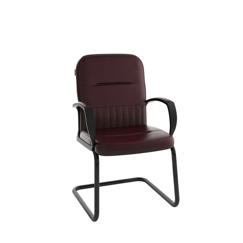 Assise et dossier rembourrés en mousse souple avec couche de dacron. Revêtement simili cuir. Accoudoirs fixe en Polypropylène couleur noir avec une partie tapissé. Structure métallique ( luge ) noir avec patins danti-dérapage.