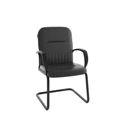 Assise et dossier rembourrés en mousse souple avec couche de dacron. Revêtement simili cuir. Accoudoirs fixe en Polypropylène couleur noir avec une partie tapissé. Structure métallique ( luge ) noir avec patins danti-dérapage.