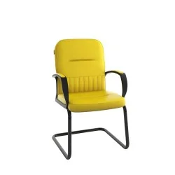 Assise et dossier rembourrés en mousse souple avec couche de dacron. Revêtement simili cuir. Accoudoirs fixe en Polypropylène couleur noir avec une partie tapissé. Structure métallique ( luge ) noir avec patins danti-dérapage.