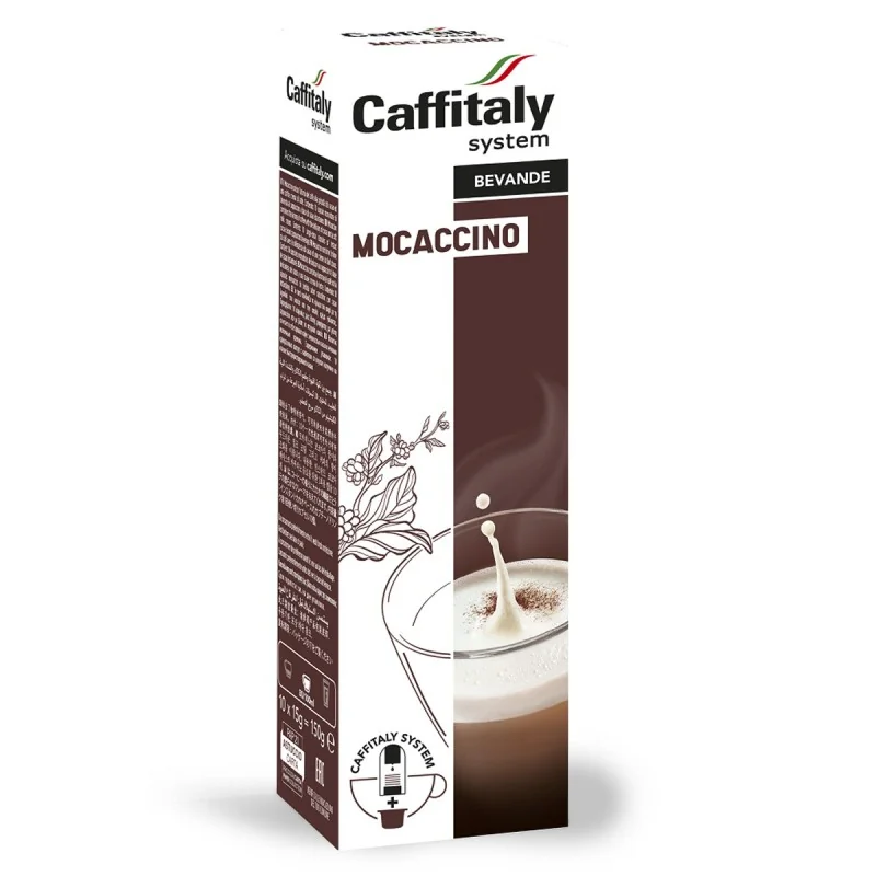 Délicieuse boisson au cappuccino avec une touche de cacao amer pour une pause gourmande. Mocaccino combine l'arôme de notre café avec le délice de la poudre de cacao et une douce crème de lait. D'un geste simple, vous pourrez déguster une boisson chaude exquise, parfumée au cappuccino et au chocolat, pour un plaisir intense à savourer à tout moment de la journée. Chaque boîte contient 10 capsules individuelles de boisson instantanée au cappuccino à base de cacao.