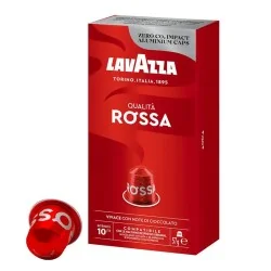 Les capsules Lavazza Qualità Rossa, compatibles Nespresso Original, offrent un expresso corsé aux notes de chocolat et de noisette. Ce mélange d'Arabica du Brésil et de Robusta d'Afrique, avec une intensité de 10 et une torréfaction moyenne, vient en paquet de 10 capsules en aluminium pour une expérience café riche.
