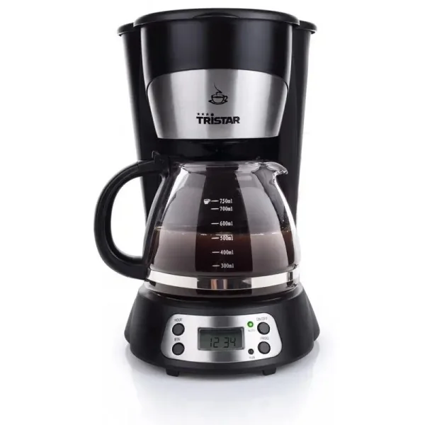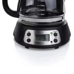 Cafetière pratique avec minuterie et affichage digital, filtre permanent, système anti-goutte et fonction maintien au chaud. Dotée d’une verseuse en verre de 0,75 L, elle offre une puissance de 700 W et s’éteint automatiquement après 40 minutes. Indicateur du niveau d’eau inclus.