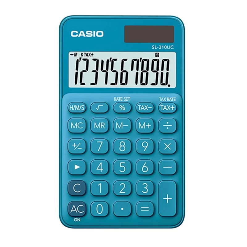 Effectuez vos calculs partout avec la calculatrice de poche CASIO. Grand écran lC extra large affiche jusqu’à 10 chiffres et évalue automatiquement les taxes et les pourcentage. 8 touches mémoires et touche de symbole +/-Séparateur de milliers, Touche de correction rapide. Racine carrée et calcul d'unités de temps, Double alimentation (pile + énergie solaire). Dimensions (HxlxL) 0,8 x 7 x 11,8 cm.