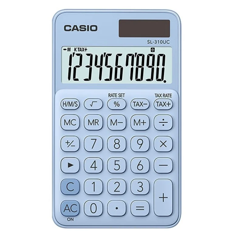 Effectuez vos calculs partout avec la calculatrice de poche CASIO. Grand écran lC extra large affiche jusqu’à 10 chiffres et évalue automatiquement les taxes et les pourcentage. 8 touches mémoires et touche de symbole +/-Séparateur de milliers, Touche de correction rapide. Racine carrée et calcul d'unités de temps, Double alimentation (pile + énergie solaire). Dimensions (HxlxL) 0,8 x 7 x 11,8 cm.