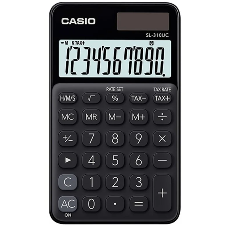 Effectuez vos calculs partout avec la calculatrice de poche CASIO. Grand écran lC extra large affiche jusqu’à 10 chiffres et évalue automatiquement les taxes et les pourcentage. 8 touches mémoires et touche de symbole +/-Séparateur de milliers, Touche de correction rapide. Racine carrée et calcul d'unités de temps, Double alimentation (pile + énergie solaire). Dimensions (HxlxL) 0,8 x 7 x 11,8 cm.
