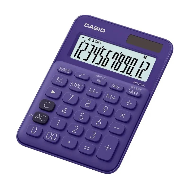 La Casio MS-20UC Violet est une calculatrice pratique et colorée, idéale pour un usage quotidien à l’école, au bureau ou à la maison.