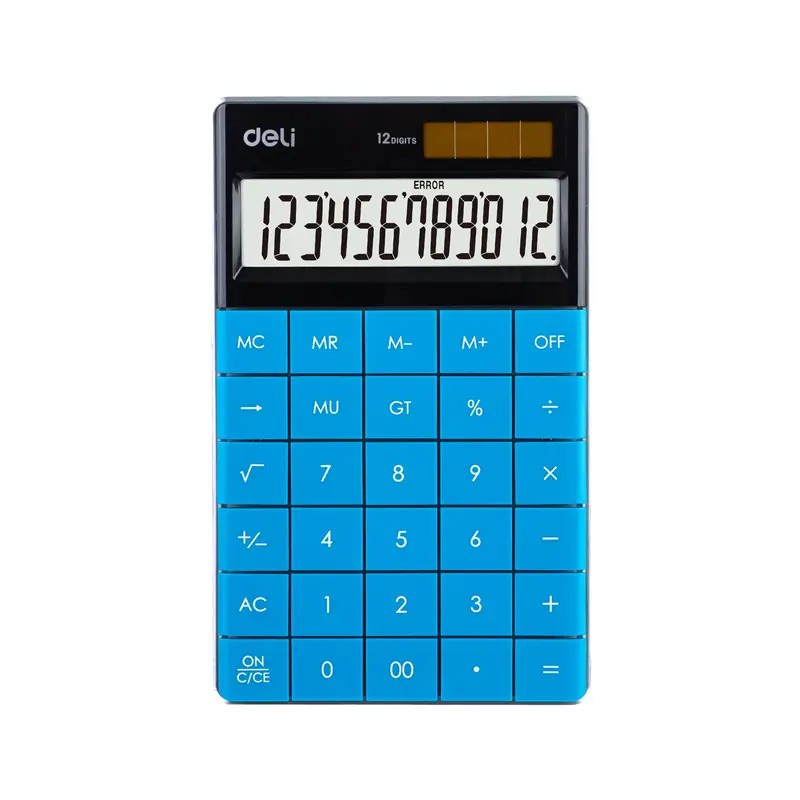 Calculatrice de bureau Deli E1589, dotée d’un affichage LCD clair pouvant afficher jusqu’à 12 chiffres, est un outil pratique et fiable pour les tâches quotidiennes de calcul. Son design compact et moderne en bleu, associé à des touches plates faciles à utiliser, en fait un choix ergonomique pour le bureau ou la maison. Elle bénéficie d’une double alimentation solaire et pile, garantissant une utilisation durable sans interruption.