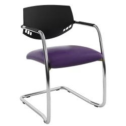 Assise rembourré en mousse souple revêtu en simili cuir, dossier en polypropylène. Accoudoirs fixe en métal chromé. Structure métallique chromé avec patins de protections antidérapant sur les extrémités.