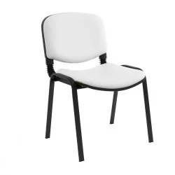 Assise et dossier rembourrés en mousse souple revêtu en simili cuir. Structure métallique époxy noir à 4 piètements avec patins de protections antidérapants sur les extrémités.