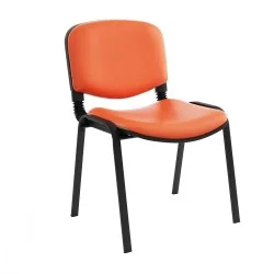 Assise et dossier rembourrés en mousse souple revêtu en simili cuir. Structure métallique époxy noir à 4 piètements avec patins de protections antidérapants sur les extrémités.