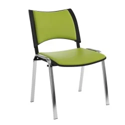 La Chaise Smart structure Chromée dossier et Assise Tapissés sans accoudoirs offre un design épuré grâce à la touche chromée très tendance. Cette chaise opérateur sait joindre lutile à lagréable en favorisant le confort et la bonne tenue du dos.