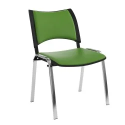 La Chaise Smart structure Chromée dossier et Assise Tapissés sans accoudoirs offre un design épuré grâce à la touche chromée très tendance. Cette chaise opérateur sait joindre lutile à lagréable en favorisant le confort et la bonne tenue du dos.
