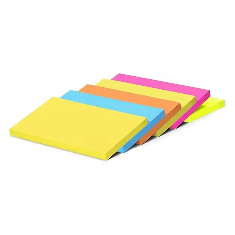 Bloc de 100 notes adhésives au format 76 x 127 mm, en couleurs fluorescentes assorties. Idéal pour les rappels, les messages et l'organisation. Bonne adhérence et retrait facile.