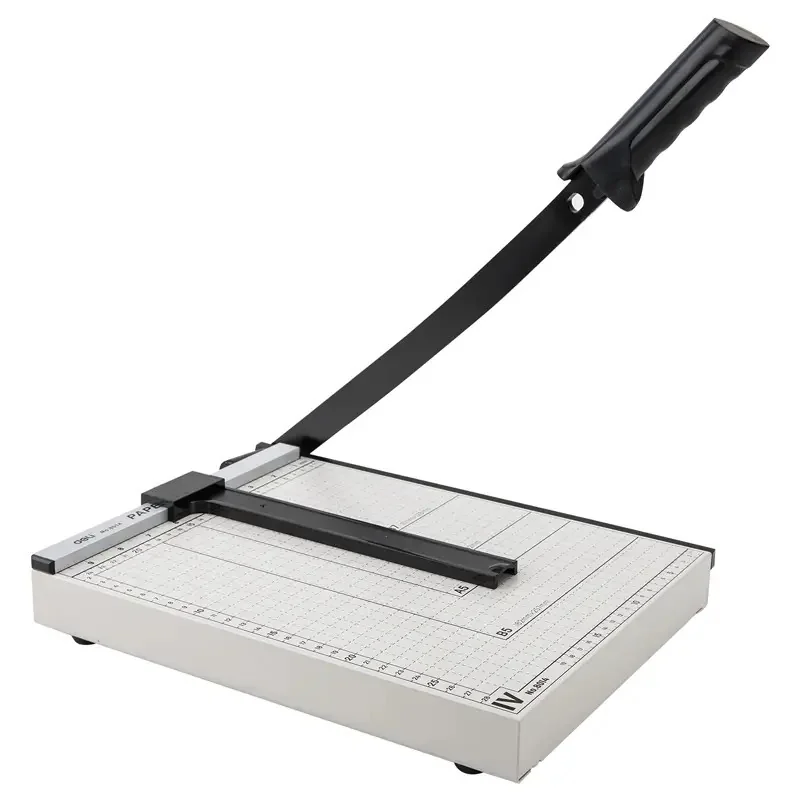 Cisaille robuste et précise, idéale pour une utilisation bureautique ou scolaire. Elle coupe jusqu’à 12 feuilles à la fois et offre un réglage du papier, une base graduée, un presse-papier intégré et des pieds antidérapants pour une coupe stable et nette. Conçue en acier, avec une poignée ergonomique, elle allie confort, sécurité et durabilité. Dimensions : 300 x 250 mm.