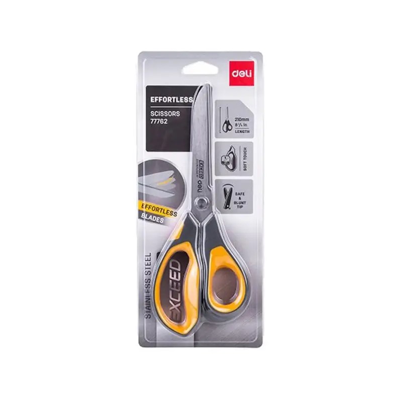 Ciseaux Deli E77762 (22 cm) sont conçus pour offrir une coupe précise et confortable, que ce soit au bureau, à l’école ou à la maison. Dotés de lames en acier inoxydable de haute qualité, ils garantissent une durabilité optimale et une performance de coupe efficace sur le papier, le carton fin et d'autres matériaux légers. Leur poignée ergonomique en plastique souple (PP + TPR) assure une prise en main agréable, même en usage prolongé. La pointe arrondie renforce la sécurité, Leur finition antiadhésive permet une utilisation fluide sans que les matériaux ne restent collés aux lames. Légers, robustes et pratiques, ces ciseaux sont un outil essentiel du quotidien.