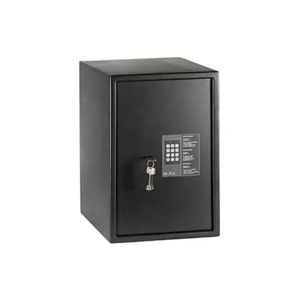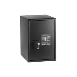 Le coffre-fort Suma se distingue par sa résistance et son côté pratique avec son système douverture par code électronique allant de 4 à 8 chiffres et clé à double pannetons de haute sécurité. On apprécie lépaisseur de la Tôle : 6mm la porte et 2mm le corps.