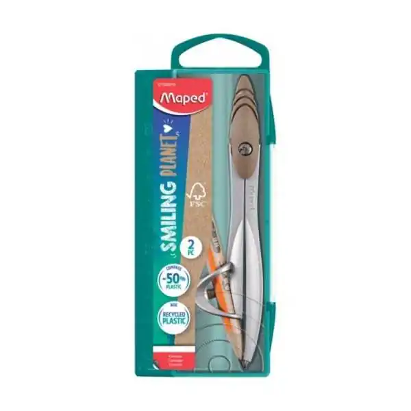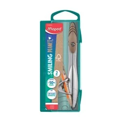 COMPAS STUDY BAGUE SMILING PLANET FSC : Avec ses branches en métal et sa chape ergonomique, ce compas est conçu pour offrir rigidité et durabilité. Son boîtier intègre une règle pratique, tandis que la chape et la vis de la bague sont fabriquées à 50 % de fibres de bois. C'est l'outil scolaire idéal pour accompagner les élèves tout au long de leur parcours.