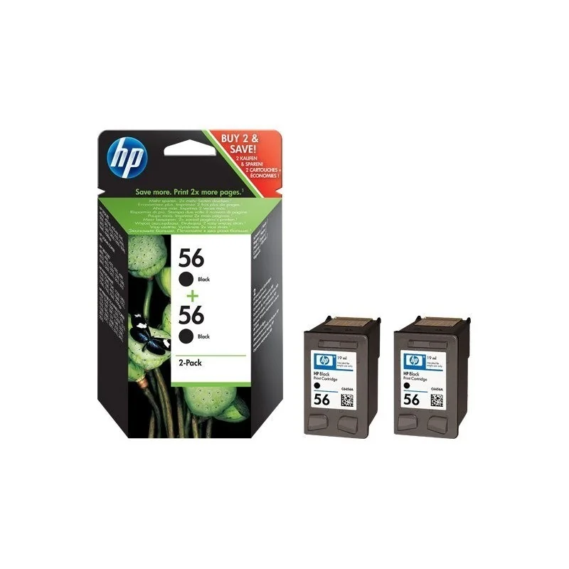 Pack HP 56+ 56 2 cartouches de couleur Noire pour imprimante Jet d'encre avec une capacité d'impression de 520+520 Pages; compatible avec les imprimantes: