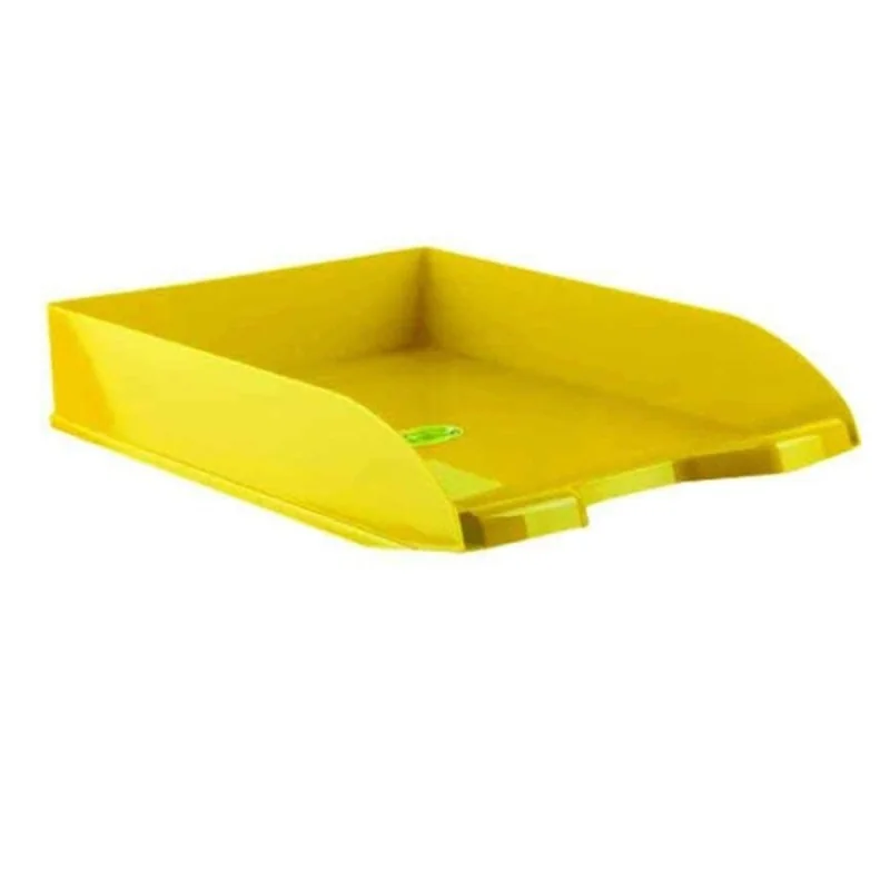 Corbeille à courrier format A4 en plastique pour un classement organisé et esthétique. elle peut contenir jusqu’à 500 feuilles de format 21 x 29,7 cm, Les corbeilles sont superposables. couleur jaune.