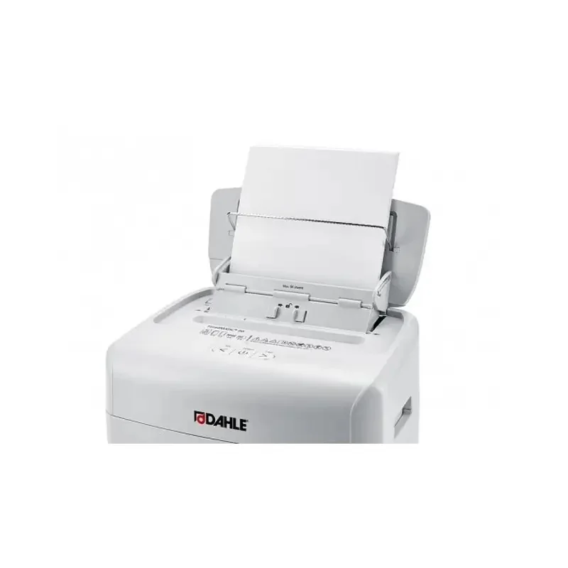 Dahle ShredMATIC 90 est un destructeur de documents “intelligent”, conçu pour un usage de bureau avec alimentation automatique, tout en restant sans entretien.