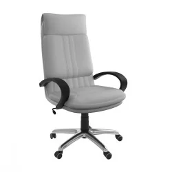 Assise et dossier rembourrés en mousse souple avec couche de dacron. Revêtement en simili cuir ou tissu. Accoudoirs fixe en polypropylène couleur noir. Mécanisme tournant, roulant, réglable en hauteur et en inclinaison. Structure étoilée à 05 branches en méttalique chromé avec 05 roulettes tournantes roulantes à double galets même matière.