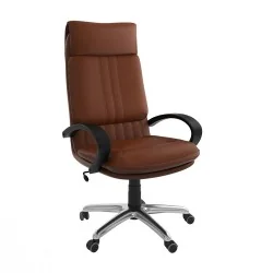 Assise et dossier rembourrés en mousse souple avec couche de dacron. Revêtement en simili cuir ou tissu. Accoudoirs fixe en polypropylène couleur noir. Mécanisme tournant, roulant, réglable en hauteur et en inclinaison. Structure étoilée à 05 branches en méttalique chromé avec 05 roulettes tournantes roulantes à double galets même matière.