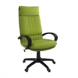 Assise et dossier rembourrés en mousse souple avec couche de dacron. Revêtement en simili cuir ou tissu. Accoudoirs fixe en polypropylène couleur noir. Mécanisme tournant, roulant, réglable en hauteur et en inclinaison. Structure étoilée à 05 branches en polypropylène couleur noir avec 05 roulettes tournantes roulantes à double galets même matière.
